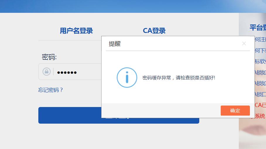陕西省平台登录时提示:密码缓存异常 ,请检查锁是否插好! 发布日期 2024-06-12 浏览量 0 标签 投标,导入清单,拷贝失败 Body 解决办法:需要重新安装多CA驱动 Cover Knowledge Category 平台 Platform 陕西省平台