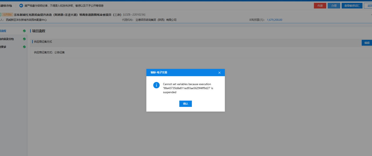 陕西政府采购网招标代理建标分包点编辑时提示错误 发布日期 2024-06-12 浏览量 0 标签 投标,导入清单,拷贝失败 Body 解决方法:这个是流程异常,挂起了,联系客服029-96702 Cover Knowledge Category 平台 Platform 陕西政府采购网