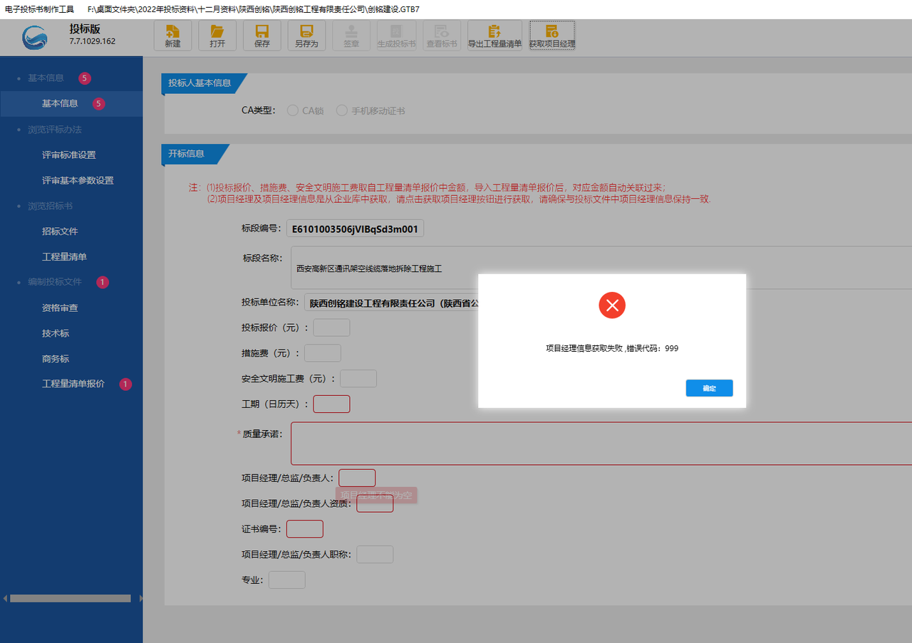 广联达编标工具无法选上项目经理 发布日期 2024-06-12 浏览量 0 标签 投标,导入清单,拷贝失败 Body 解决办法 : 查看是否有在建项目,是否符合招标要求,查看锁是否开通市平台 Cover Knowledge Category 编标工具 Platform 西安市平台
