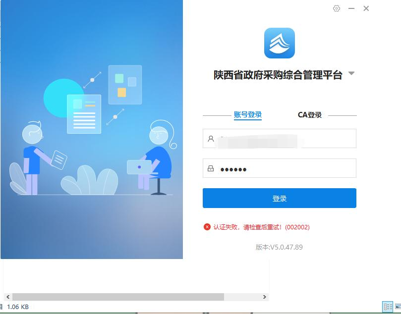 Body 解决办法: 提示这个错误,一般是帐号或者密码有问题,帐号使用统一信用代码,密码使用网站注册登录的密码 Cover Knowledge Category 政府采购投标客户端 Platform 陕西政府采购网